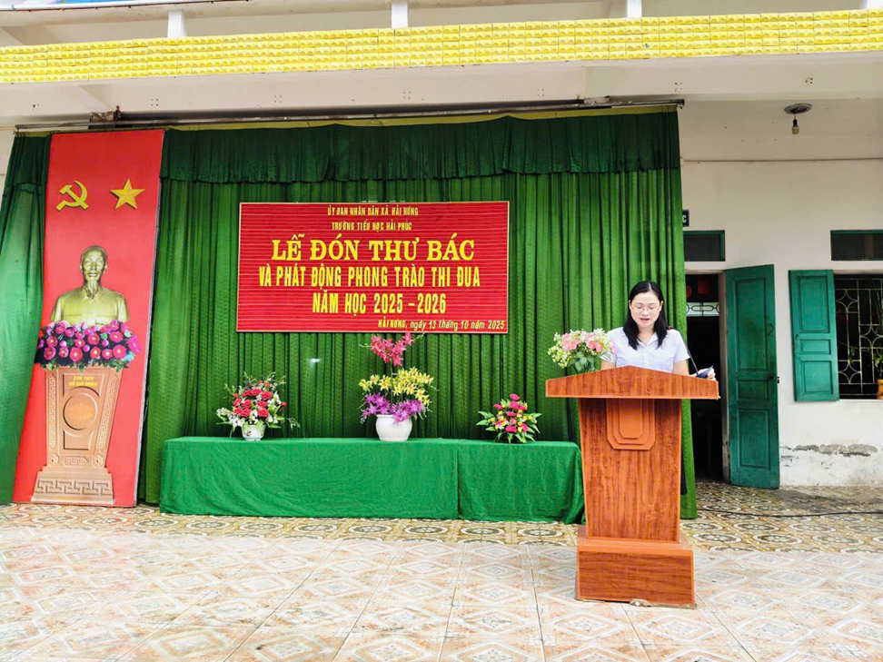 Trong không khí thiêng liêng ấy, cô Trần Thị Cải – Bí thư Chi bộ, Hiệu trưởng nhà trường – đã trang trọng đọc thư Bác. Những lời dặn dò ân cần, thấm đượm tình yêu thương của Người tiếp tục vang vọng, nhắc nhở mỗi thầy cô giáo và học sinh về trách nhiệm, tình yêu nghề và ý chí vươn lên trong học tập, rèn luyện. Phát biểu tại buổi lễ, đại diện Ban Giám hiệu nhấn mạnh: để xứng đáng với lòng mong mỏi của Bác, thầy và trò Trường Tiểu học Hải Phúc cần tiếp tục đẩy mạnh phong trào thi đua “Dạy tốt – Học tốt”, xây dựng “Trường học thân thiện, học sinh tích cực”, không ngừng đổi mới phương pháp dạy học, thực hiện tốt cuộc vận động “Học tập và làm theo tư tưởng, đạo đức, phong cách Hồ Chí Minh”.