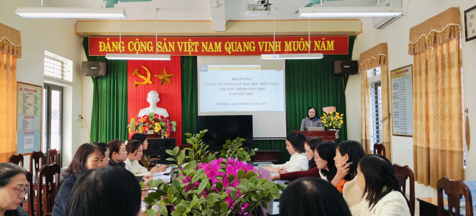 Thực hiện Kế hoạch số 86/KH-SGDĐT ngày 23/12/2025 của Sở Giáo dục và Đào tạo tỉnh Ninh Bình, Trường Tiểu học Hải Phúc đã tổ chức buổi bồi dưỡng nâng cao năng lực dạy học môn Toán cấp trường, nhằm tăng cường năng lực chuyên môn cho đội ngũ giáo viên, đáp ứng yêu cầu đổi mới giáo dục Tiểu học theo Chương trình Giáo dục phổ thông 2018.